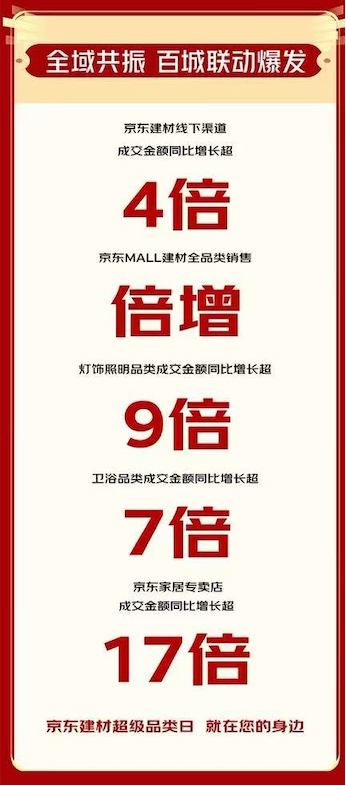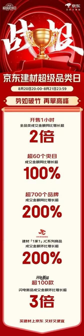 正在京东建材超等品类日期间,京东建材超等品类日还带动百城联动,超700个品牌成交额同比增加超200%。京店主居专卖店成交额同比增加超17倍。超60个品类成交额同比增加超100%,京东建材超等品类日期间,此中,京东MALL建材全品类实现发卖倍增?